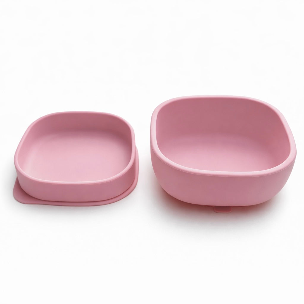 2-i-1 silikonskål og tallerken med lokk og sugekopp 🍓