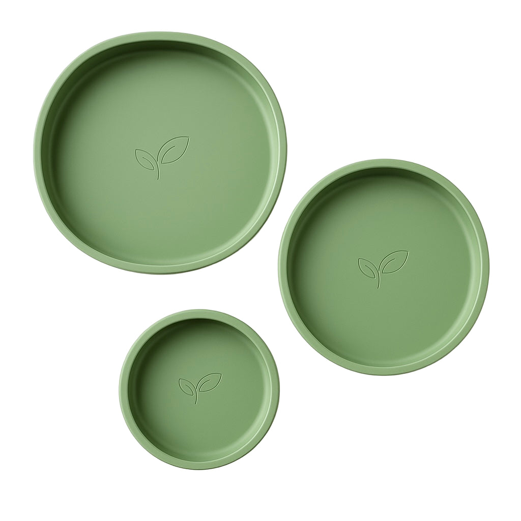Inneholder en liten, en medium og en stor tallerken/skål – perfekt til frokost, middag og snacks, og vokser med barnet ditt.