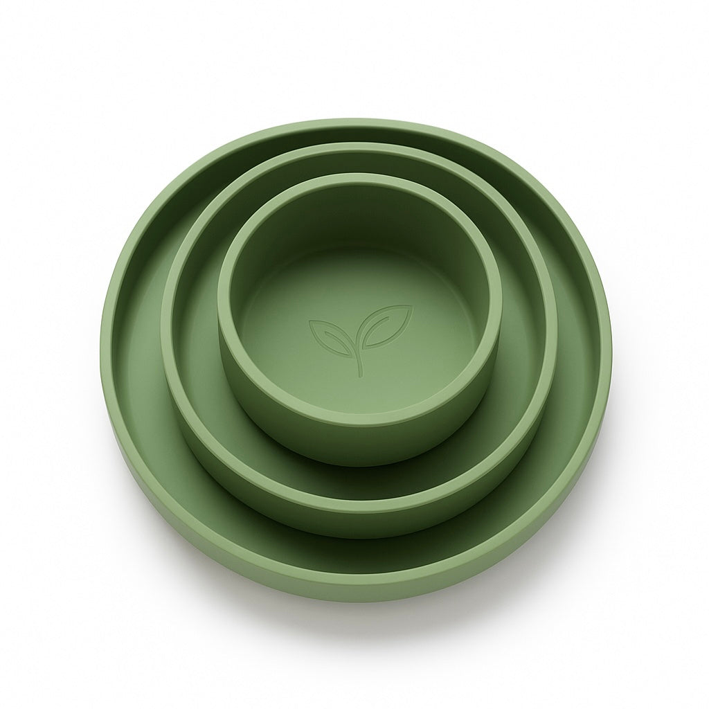 Babyservise i silikon 3 deler - tallerken og skål - Meadow