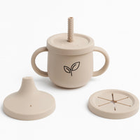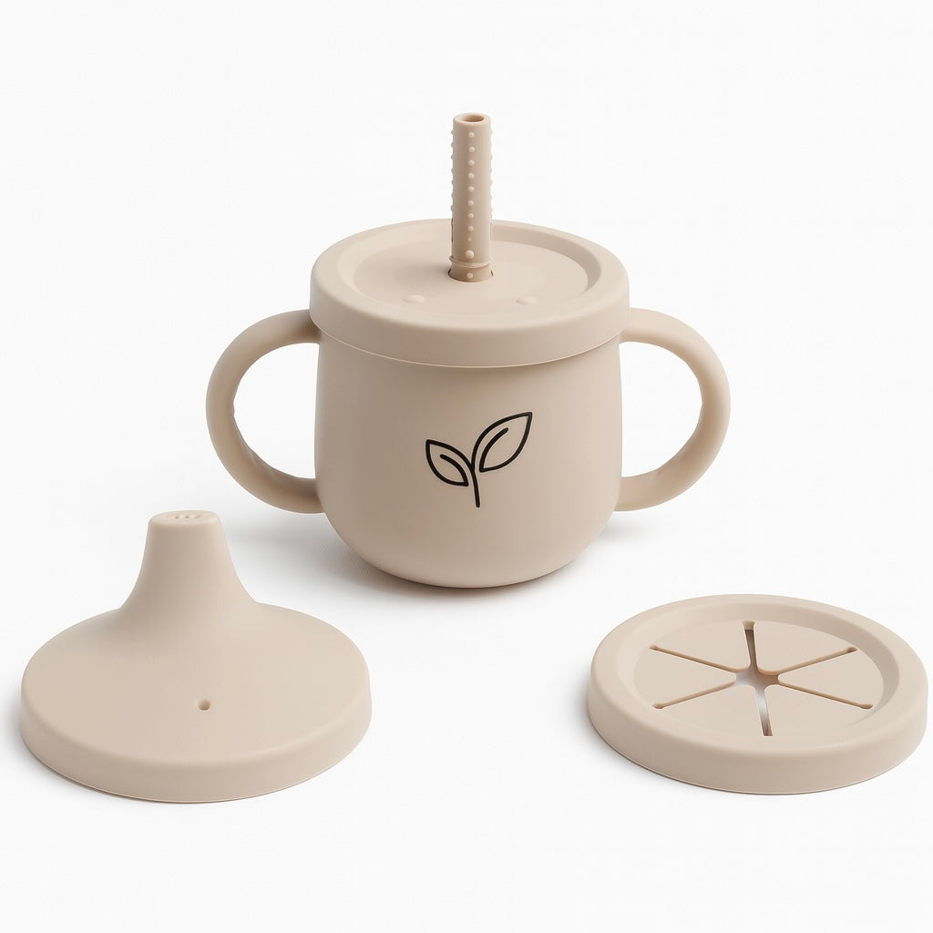 Silikonkopp 4-i-1 baby - kopp, sugerør, tut og snackslokk - Sandstone