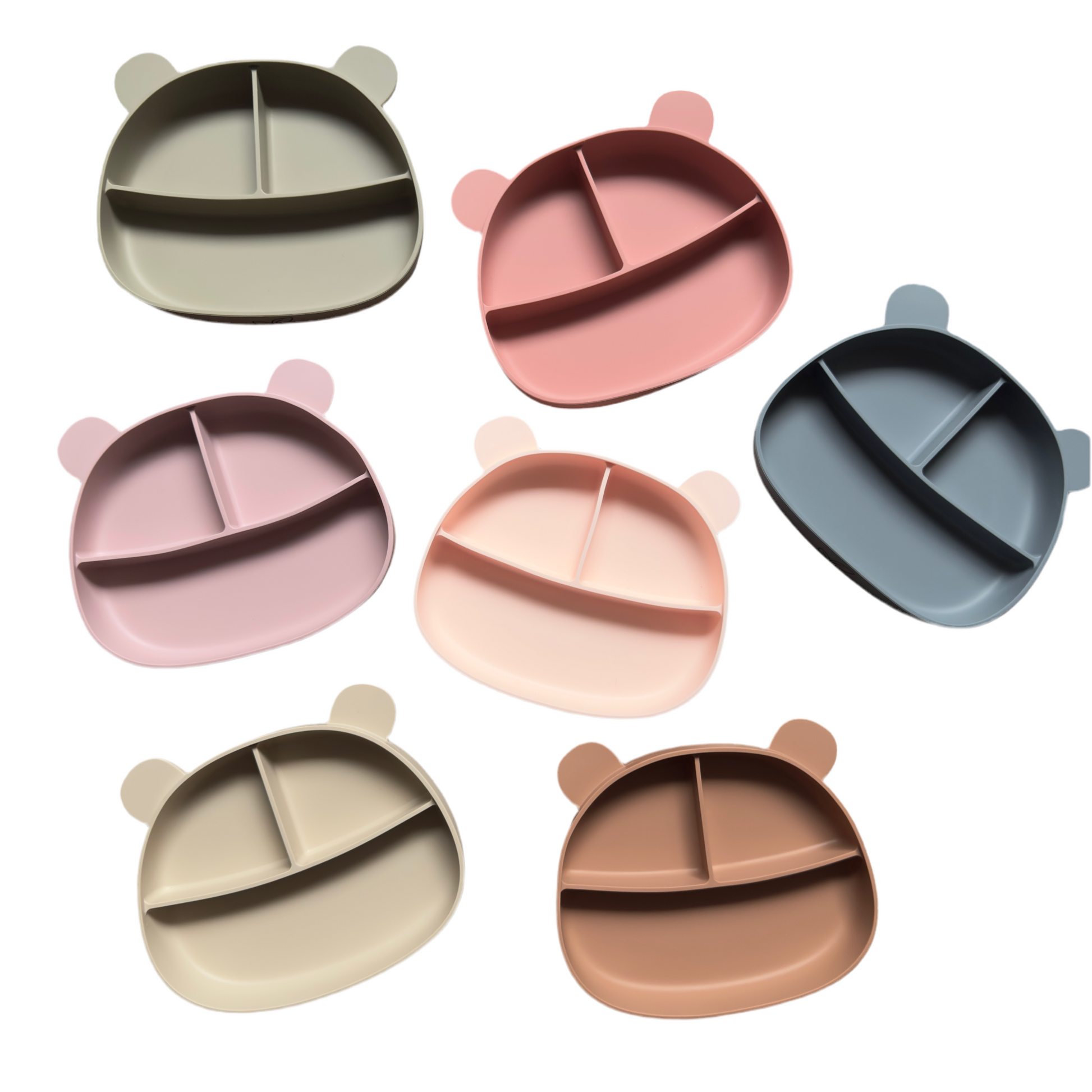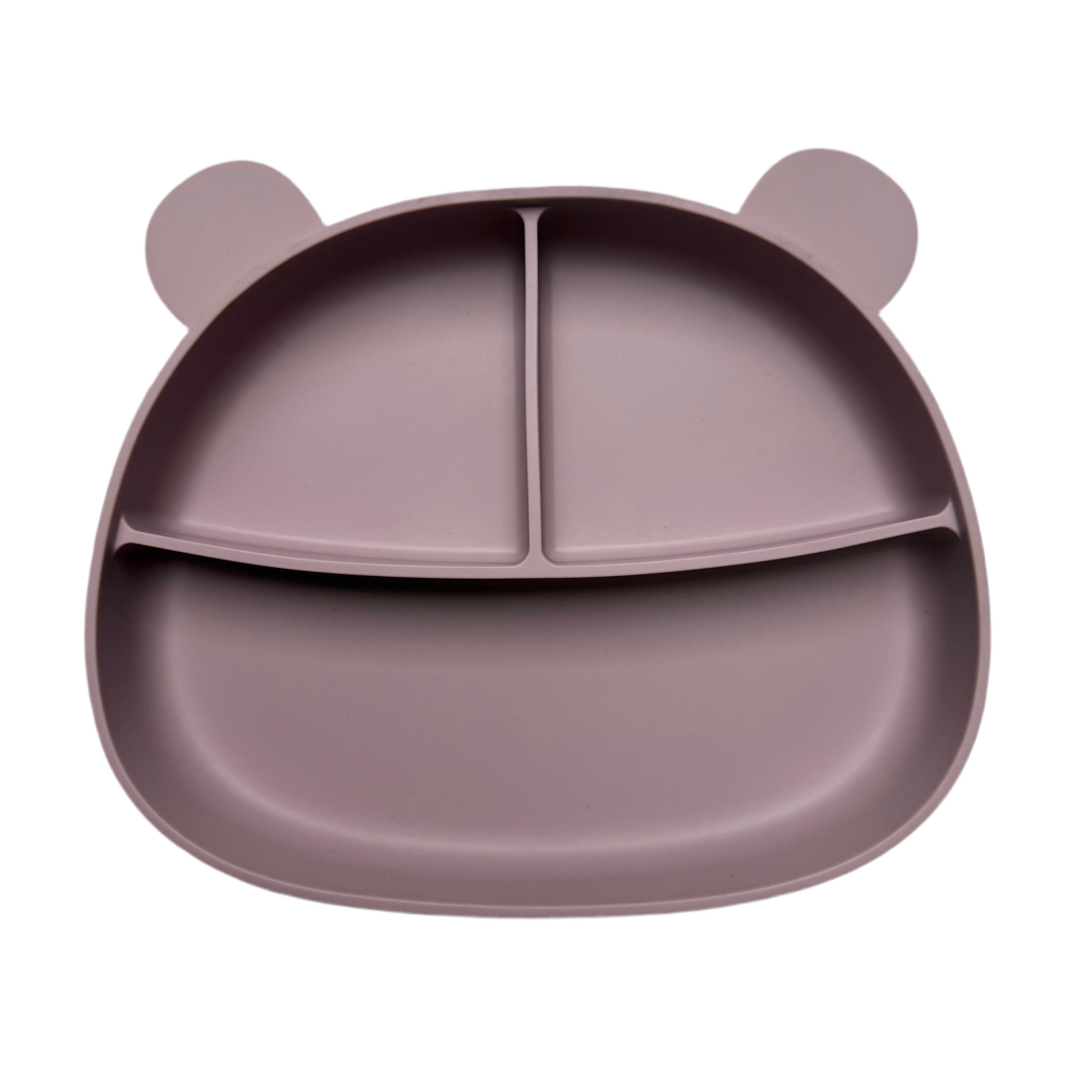 En søt og praktisk tallerken formet som et bamsehode, perfekt for små matglade oppdagere 🐻 Sugekopp under som holder tallerkenen på plass.