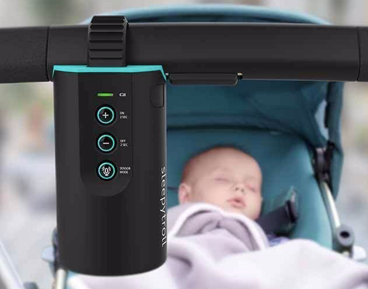 Sleepytroll Baby Rocker har innebygd lyd- og bevegelsessensorer som forsiktig starter å vugge barnevognen når lyd eller bevegelser blir registrert.