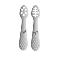 Skjeene er laget i fleksibel, trygg silikon, skånsom mot både tannkjøtt og små munner.