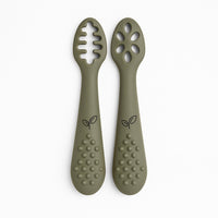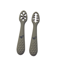 Skjeene er laget i fleksibel, trygg silikon, skånsom mot både tannkjøtt og små munner.