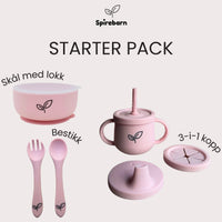 Med Spirebarn Starter pack får du alt du trenger for en trygg og god start på måltidene i myk, matsikker silikon som er skånsom mot små munner og hender.